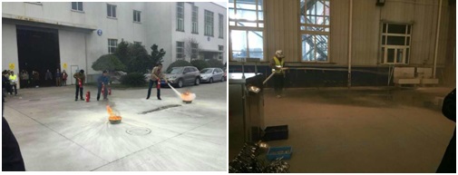 消防演練正式開始的指令發(fā)出后,現(xiàn)場模擬生產(chǎn)管理部一次裝配班組作業(yè)區(qū)內(nèi)發(fā)生火災(zāi),由員工完成火災(zāi)報(bào)警、火場逃生、組織疏散群眾以及控制火勢,實(shí)際現(xiàn)場使用滅火器和消防水滅火等系列演練。參加演練人員紛紛表示,通過親手實(shí)踐參與滅火,增長了消防安全知識(shí),掌握了科學(xué)滅火技能。
