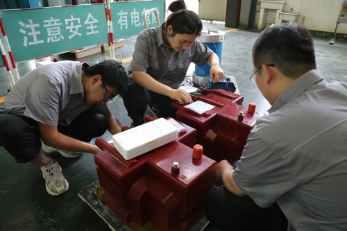 圖為卓能質(zhì)量事業(yè)部質(zhì)檢人員為每一件來料進(jìn)行來料檢驗(yàn),對無錫本部華盛苑20kV戶內(nèi)環(huán)網(wǎng)柜等工程共15個電壓互感器進(jìn)行工頻耐壓試驗(yàn),為后續(xù)的產(chǎn)品質(zhì)量作出保障。