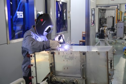 圖為高溫下的堅守者,裝配車間金工班組的員工全副武裝頂酷暑戰(zhàn)高溫,完成常州供電公司低壓電纜分支箱殼體制作工作;